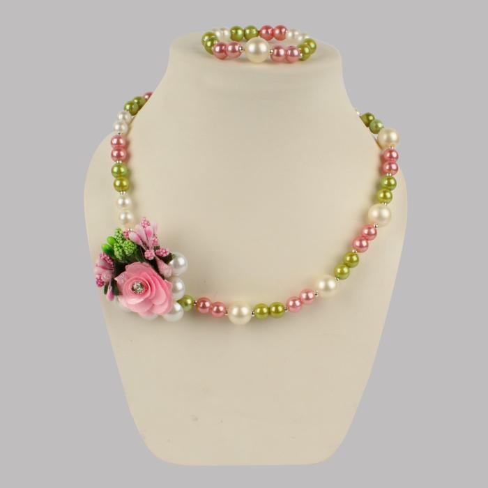 Rose and Pearl Detailed Necklace and Bracelet Set